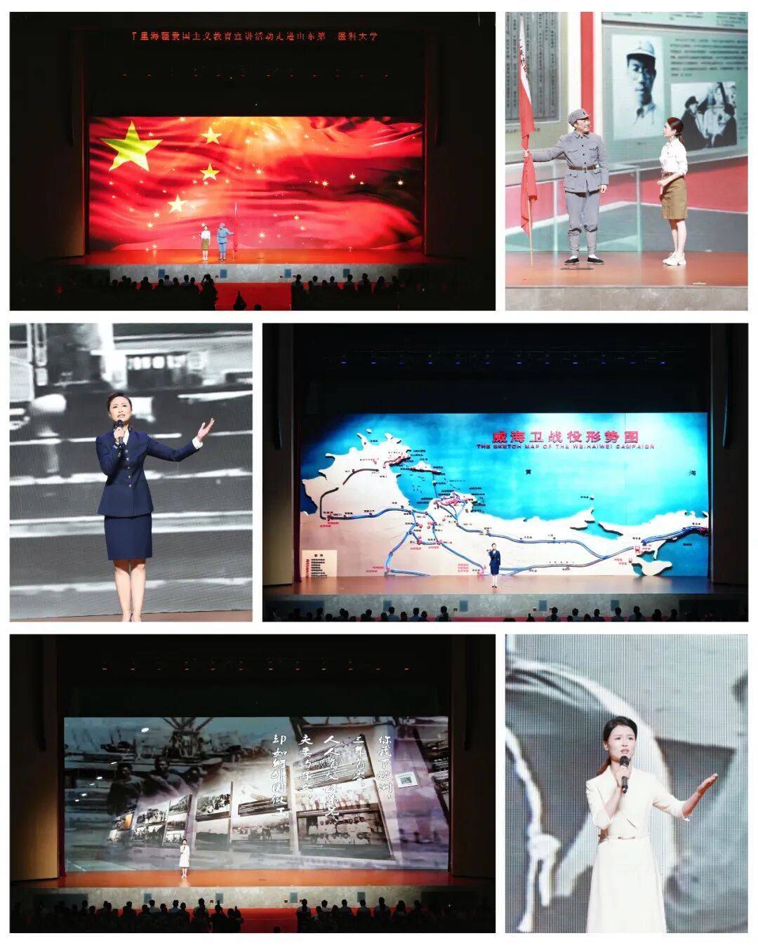 威海地处海防前沿,“千里海疆”既是地理自然景观,也是爱国主义教育的天然载体。宣讲中,千里海疆爱国主义教育宣讲团成员们以情景演绎、跨时空对话等形式,聚焦甲午战争、一战华工、天福山起义、胶东乳娘等主题,宣讲以《甲午警示钟》拉开序幕,带领师生深切感悟甲午海战中民族不屈的抗争精神;《他从东方来》讲述了一战华工默默奉献的崇高情怀;《旗帜》演绎了天福山起义的革命烽火;《我们的奶奶从未走远》讲述了王淑贞老人80多年来的初心不渝;《乳娘:战火中的爱与守护》重温了胶东乳娘无畏生死的大爱无疆;《马石山十勇士:舍身忘死恸山河》讲述了马石山十勇士英勇牺牲的悲壮故事;《他们就是最可爱的人》展现了今天的和平来之不易;《永远的怀念》阐释了“两弹一星”功勋郭永怀以身许国的一腔热血;《“威海制造”耀国威》诠释了劳模精神、劳动精神、工匠精神。这些主题鲜明的爱国主义故事,为广大师生上了一堂别开生面的爱国主义教育课、震撼人心的红色思政课,让师生们深刻理解到爱国主义精神的内涵和价值,激励莘莘学子厚植爱国情怀、争做新时代好青年。